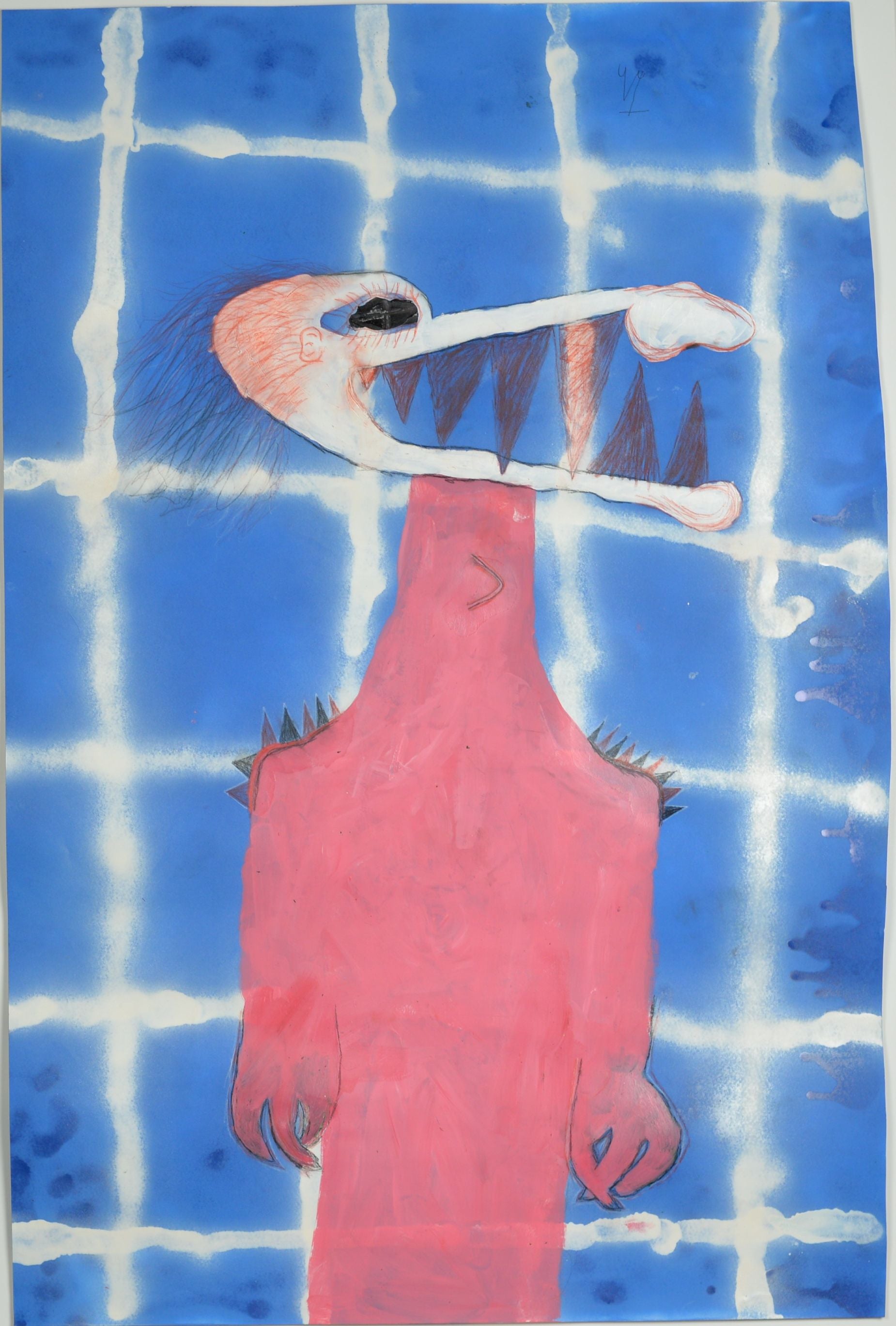 Spray paint, Acrylic and Charcoal Pencil on Paper